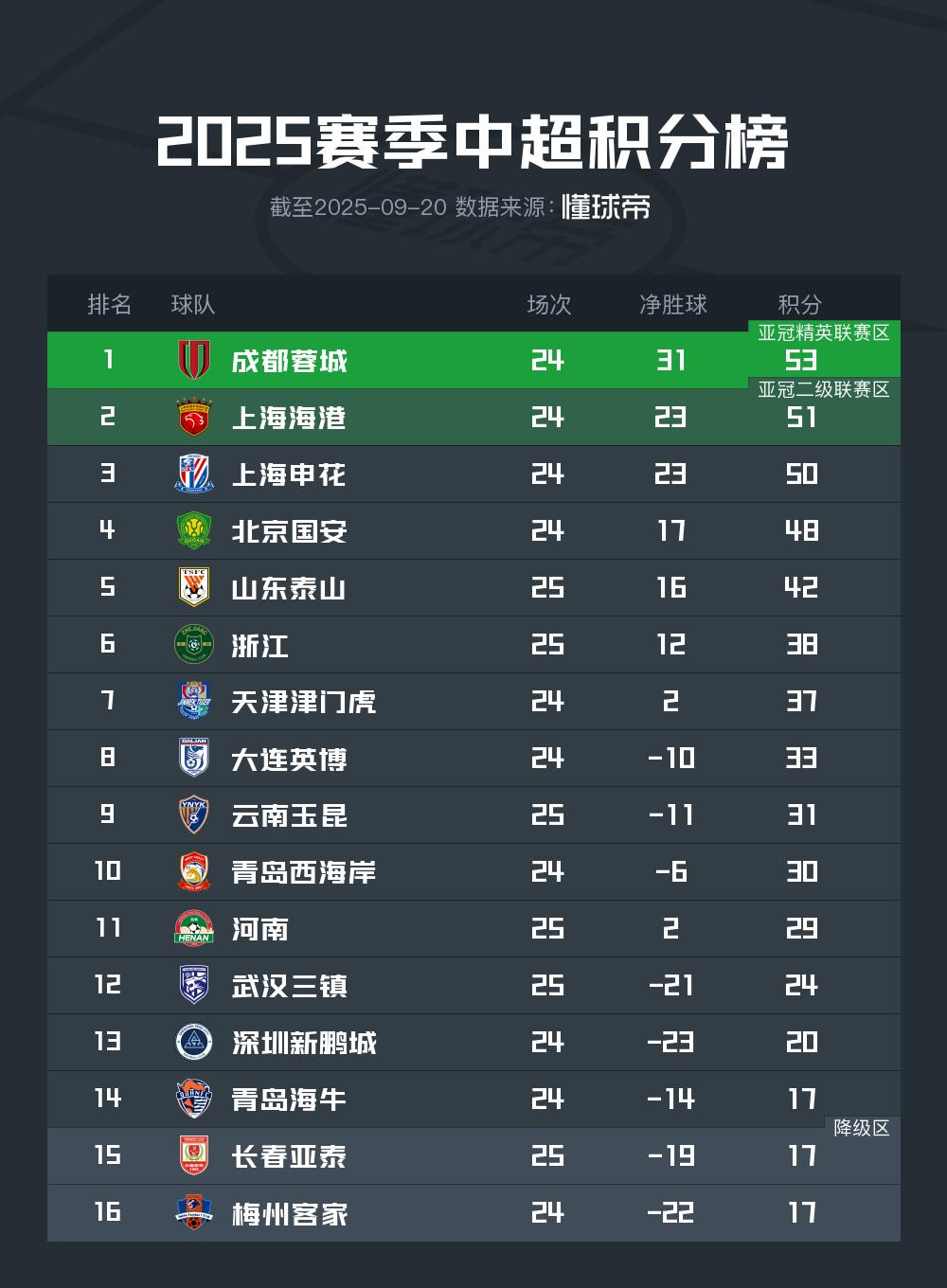保级区乱战,海牛、亚泰、梅州同积17分排在积分榜后三位